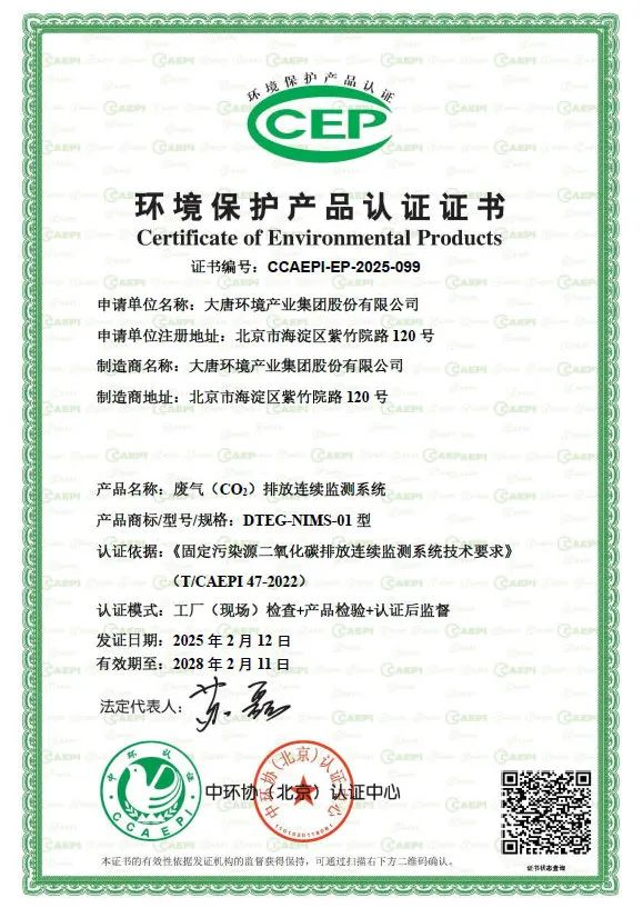 2月12日,大唐環(huán)境自主研發(fā)的二氧化碳排放連續(xù)監(jiān)測系統(tǒng)成功獲得中國環(huán)境保護(hù)產(chǎn)品認(rèn)證(CCEP)證書,成為集團(tuán)公司內(nèi)首家通過該認(rèn)證的企業(yè)。這一里程碑式的成就不僅彰顯了大唐環(huán)境在環(huán)保技術(shù)領(lǐng)域的領(lǐng)先地位,更為國家“雙碳”戰(zhàn)略的實(shí)施注入了強(qiáng)勁動(dòng)力。