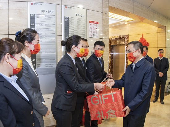 “新年好!大家辛苦了,感謝大家優(yōu)質出色的服務!”在集團公司總部一樓大廳,鄒磊首先向堅守崗位的物業(yè)值班人員致以節(jié)日的問候并為大家送上慰問禮物,對全體物業(yè)人員在過去一年中立足崗位全力做好各項服務保障工作,為集團公司生產經營工作順利進行所作出的辛勤奉獻表示感謝。勉勵大家再接再厲,堅守服務品質,創(chuàng)新服務模式,以一流業(yè)績打造一流物業(yè)服務品牌。
