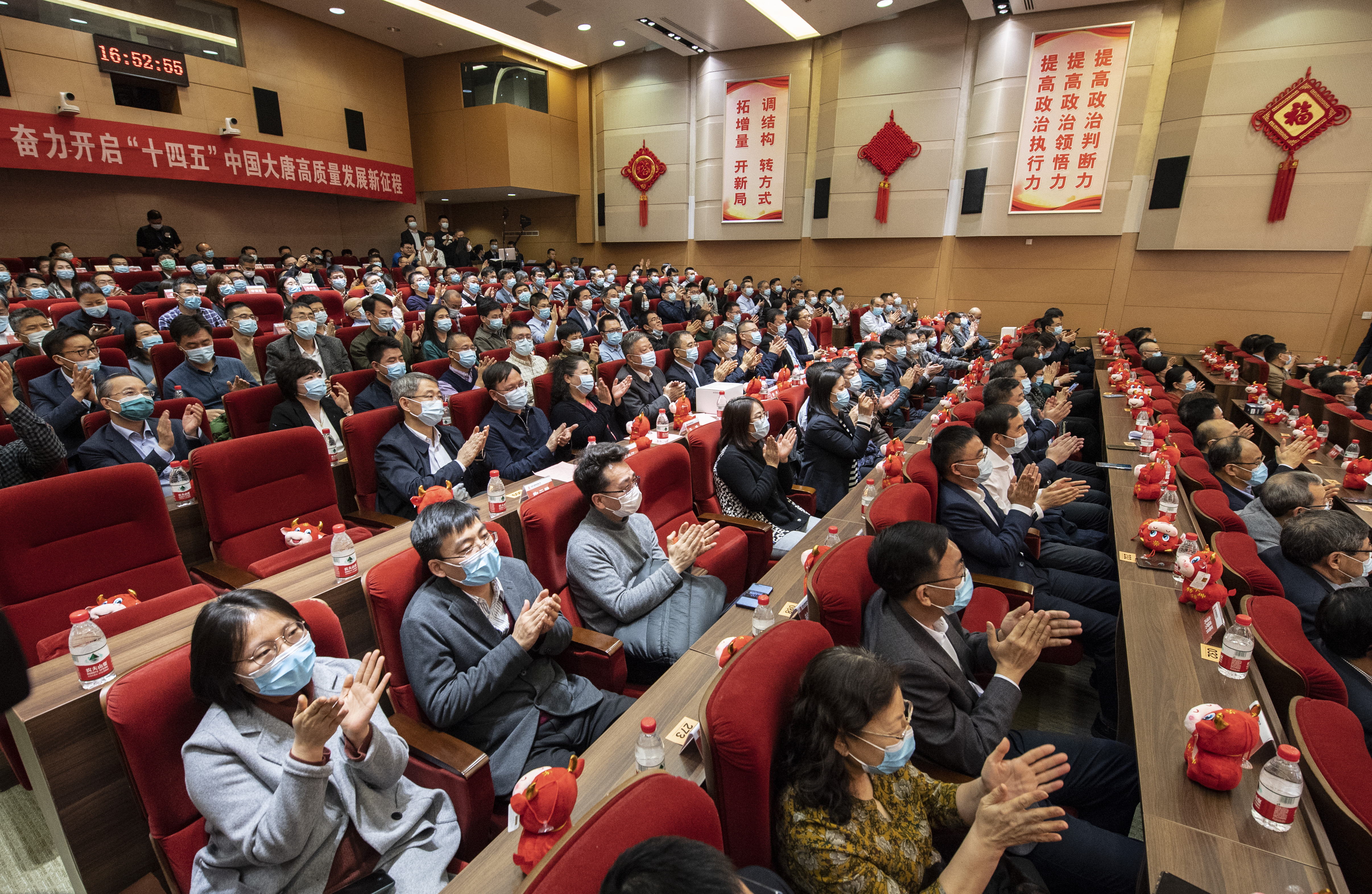集團公司領(lǐng)導(dǎo)與總部干部員工共同觀看了集團系統(tǒng)“云”拜年視頻,并舉行了簡短的慰問活動。在全場大合唱《團結(jié)就是力量》的歌聲中,大唐干部員工滿懷豪情、團結(jié)一心,邁向“二次創(chuàng)業(yè)”的壯麗征程。