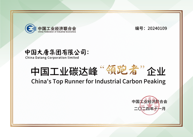 中國大唐榮獲中國工業(yè)碳達(dá)峰“領(lǐng)跑者”企業(yè)稱號