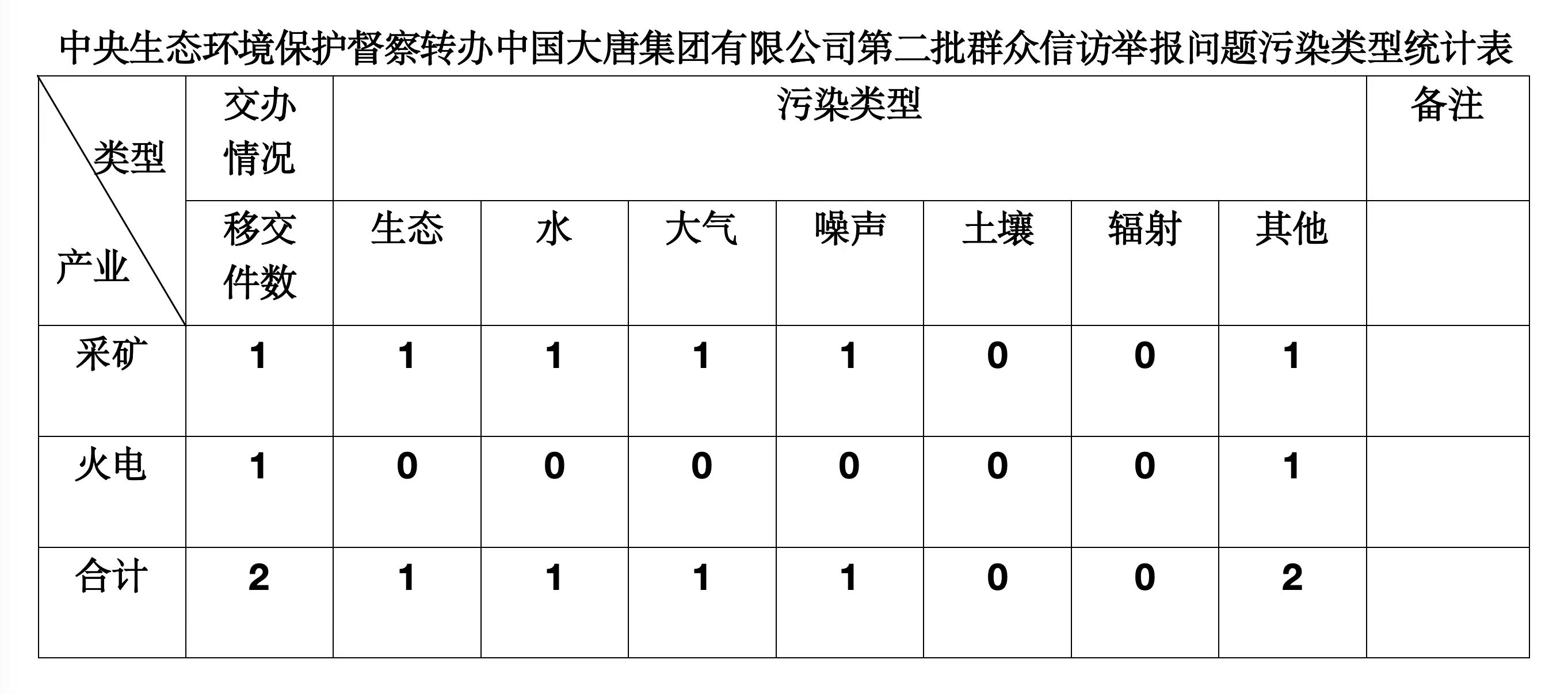 2025年6月4日,中央第七生態(tài)環(huán)境保護(hù)督察組向中國(guó)大唐集團(tuán)有限公司移交第二批群眾信訪舉報(bào)件,共計(jì)2件,來(lái)電舉報(bào)和來(lái)信舉報(bào)各1件,涉及生態(tài)問(wèn)題1個(gè)、水問(wèn)題1個(gè)、大氣問(wèn)題1個(gè)、噪聲問(wèn)題1個(gè)、其他問(wèn)題2個(gè)。所有舉報(bào)件辦理工作已第一時(shí)間進(jìn)入調(diào)查核實(shí)辦理程序,辦理情況將按照相關(guān)要求反饋督察組,并及時(shí)向社會(huì)公開(kāi)。