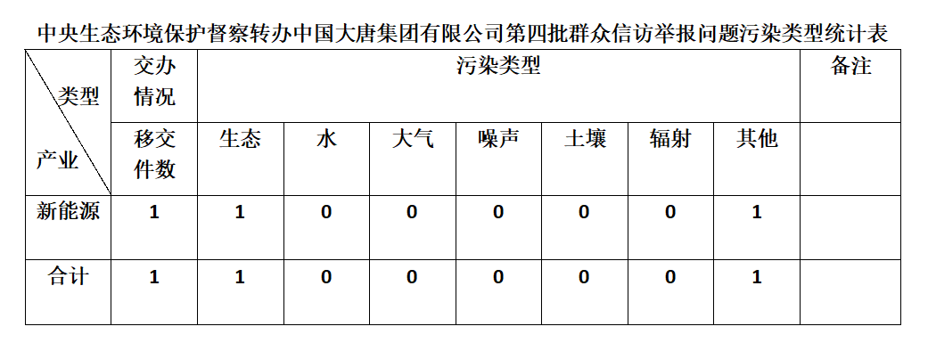 2025年6月6日,中央第七生態(tài)環(huán)境保護(hù)督察組向中國(guó)大唐集團(tuán)有限公司移交第四批群眾信訪舉報(bào)件,共計(jì)1件,為來(lái)信舉報(bào),涉及生態(tài)問(wèn)題1個(gè)、其他問(wèn)題1個(gè)。所有舉報(bào)件辦理工作已第一時(shí)間進(jìn)入調(diào)查核實(shí)辦理程序,辦理情況將按照相關(guān)要求反饋督察組,并及時(shí)向社會(huì)公開(kāi)。