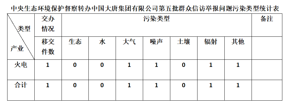 中央第七生態(tài)環(huán)境保護督察組向中國大唐集團有限公司轉(zhuǎn)辦第五批群眾信訪舉報件