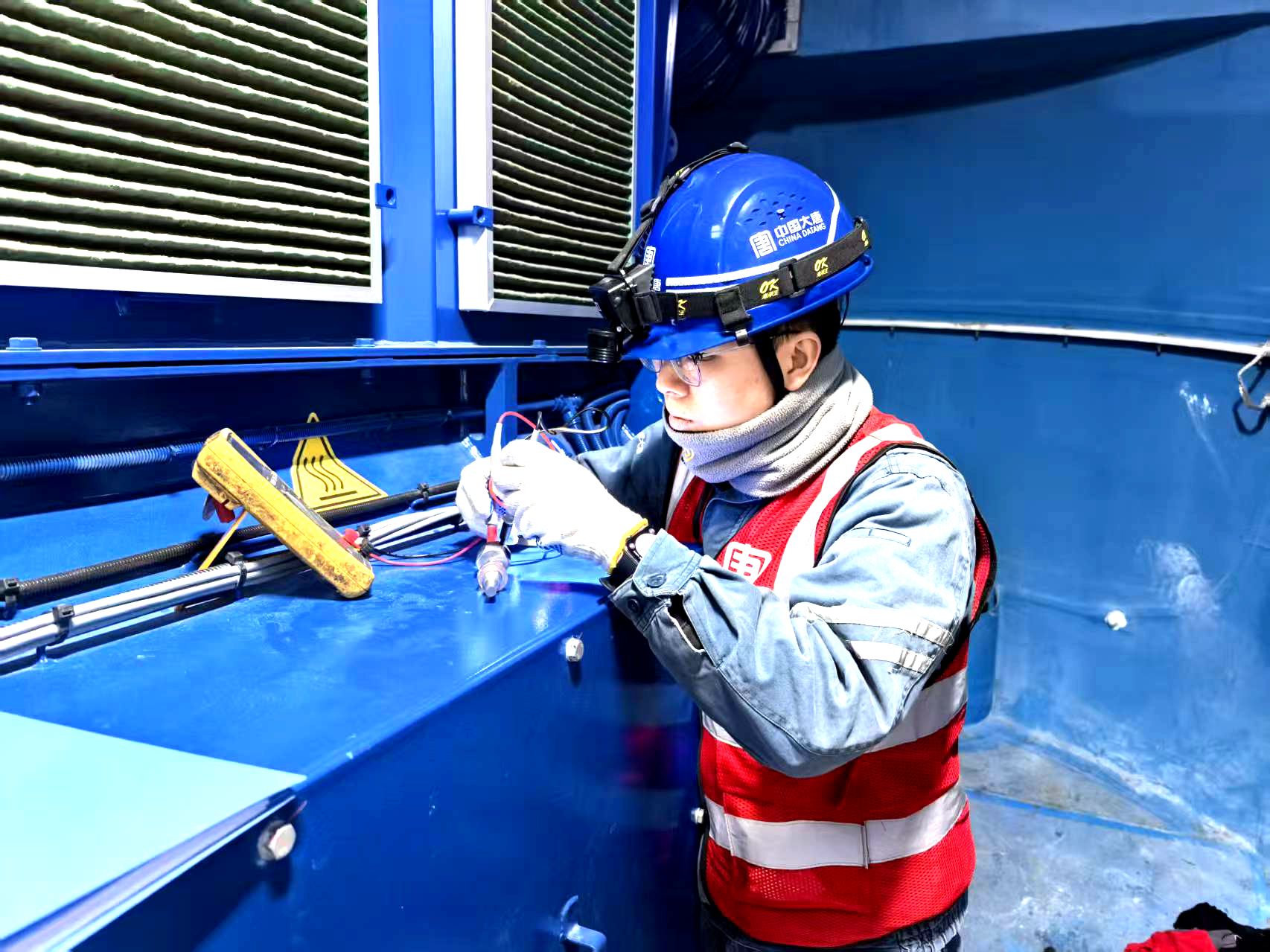 機艙蓋板剛掀開一道縫,凜冽的寒風就像無數(shù)冰粒砸在臉上。他下意識側(cè)過身用胳膊護住口鼻,借著風勢稍緩的瞬間猛地推開蓋板。頂著呼嘯的狂風,他順著機艙內(nèi)部爬梯穩(wěn)步挪到控制柜旁,迅速從工具包中掏出萬用表,“停電—驗電—掛牌”整套安全流程一氣呵成,動作干脆利落,沒有絲毫拖泥帶水。