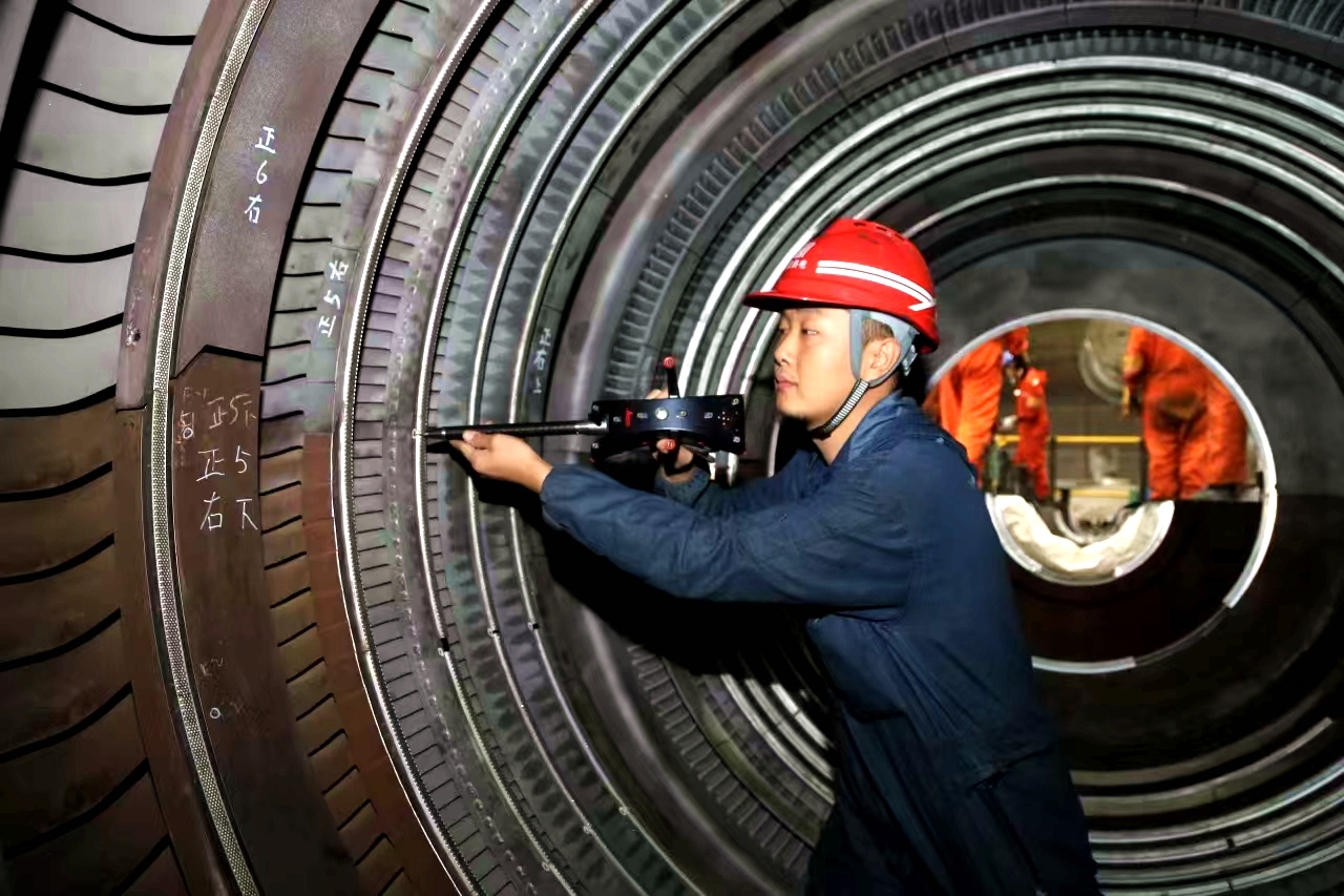 “慢一點,對準榫槽!”他的聲音沙啞卻堅定,仿佛在安撫緊張的戰(zhàn)友。隨著行車操作員的精準操控,修復(fù)一新的葉片如同歸隊的士兵,“咔嗒”一聲嵌入轉(zhuǎn)子輪槽。當(dāng)轉(zhuǎn)子開始轉(zhuǎn)動,轉(zhuǎn)速逐步提升,監(jiān)測屏上的數(shù)據(jù)始終平穩(wěn)如鏡。