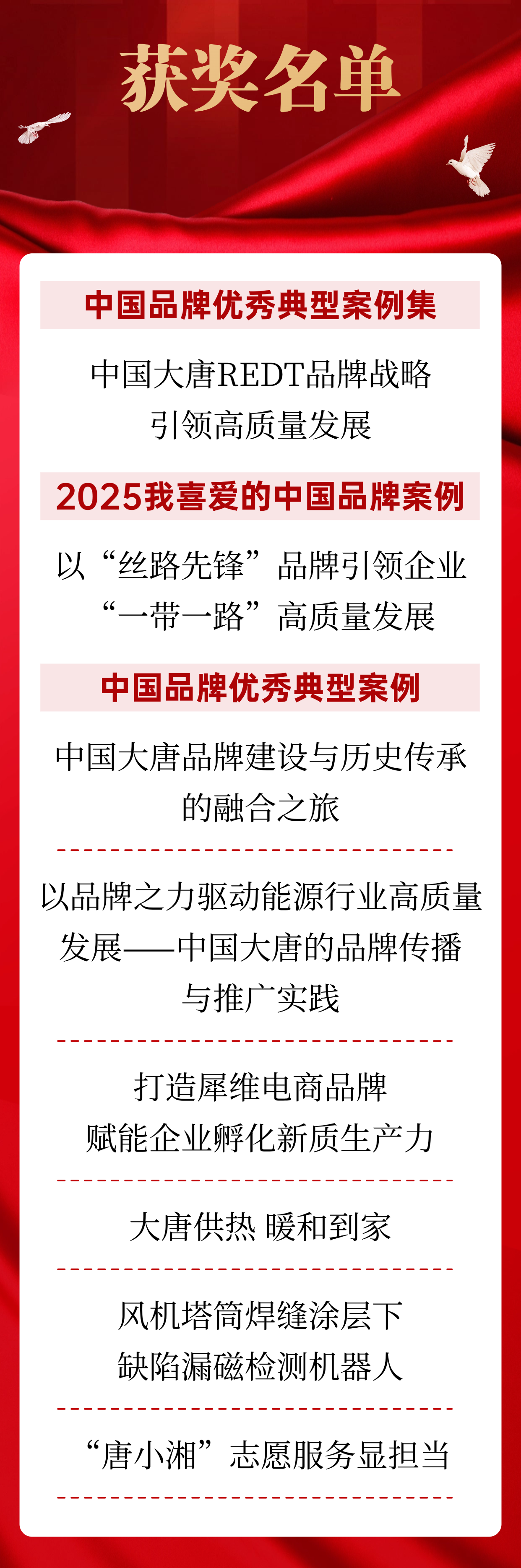 中國(guó)大唐此次入選的8個(gè)案例,內(nèi)容豐富、領(lǐng)域廣泛,充分展現(xiàn)了品牌建設(shè)的系統(tǒng)性與多樣性。