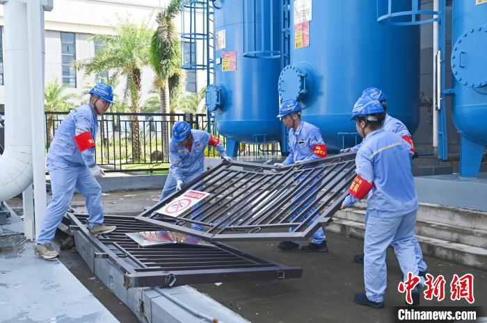 9月8日,???,大唐??诠驹趶S(chǎng)區(qū)內(nèi)開(kāi)展災(zāi)后設(shè)備設(shè)施修復(fù)工作 (大唐海南公司供圖)