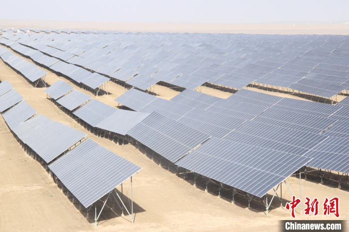 新疆昆玉市地處昆侖山北麓、塔克拉瑪干沙漠南緣。近年來,當(dāng)?shù)靥剿鳂?gòu)建防沙治沙新路徑,在發(fā)展光伏清潔能源的同時(shí),積極探索生態(tài)效益和經(jīng)濟(jì)效益的雙贏。圖為5日,大唐第十四師昆玉市100萬千瓦光伏基地項(xiàng)目一期現(xiàn)場(chǎng)。馬曉東 攝