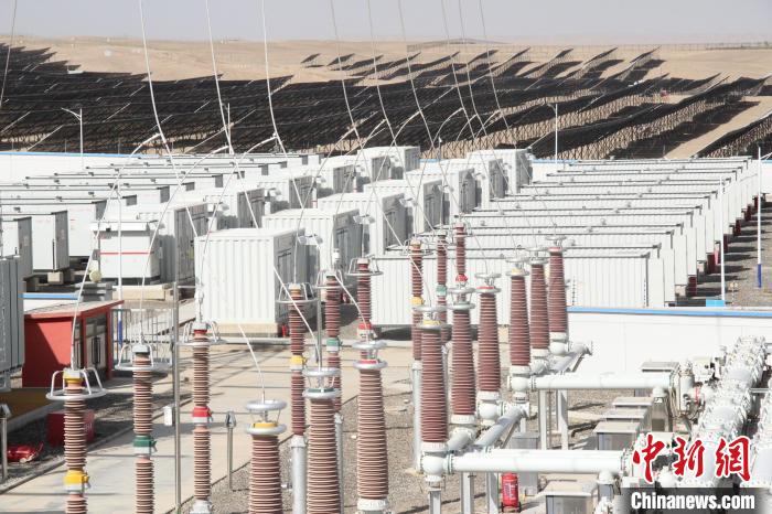 圖為5日,大唐第十四師昆玉市100萬千瓦光伏基地配套儲(chǔ)能區(qū)。馬曉東 攝