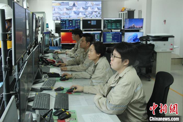 圖為5日,大唐第十四師昆玉市100萬千瓦光伏基地中控室內(nèi),工作人員通過智能化、數(shù)字化系統(tǒng)進(jìn)行運(yùn)維操作。馬曉東 攝