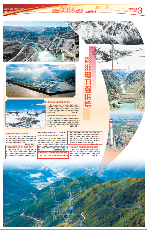【中國電力報(bào)]全球海拔最高風(fēng)電項(xiàng)目全容量并網(wǎng)投產(chǎn) 全球煤電機(jī)組二次再熱最高汽溫紀(jì)錄刷新