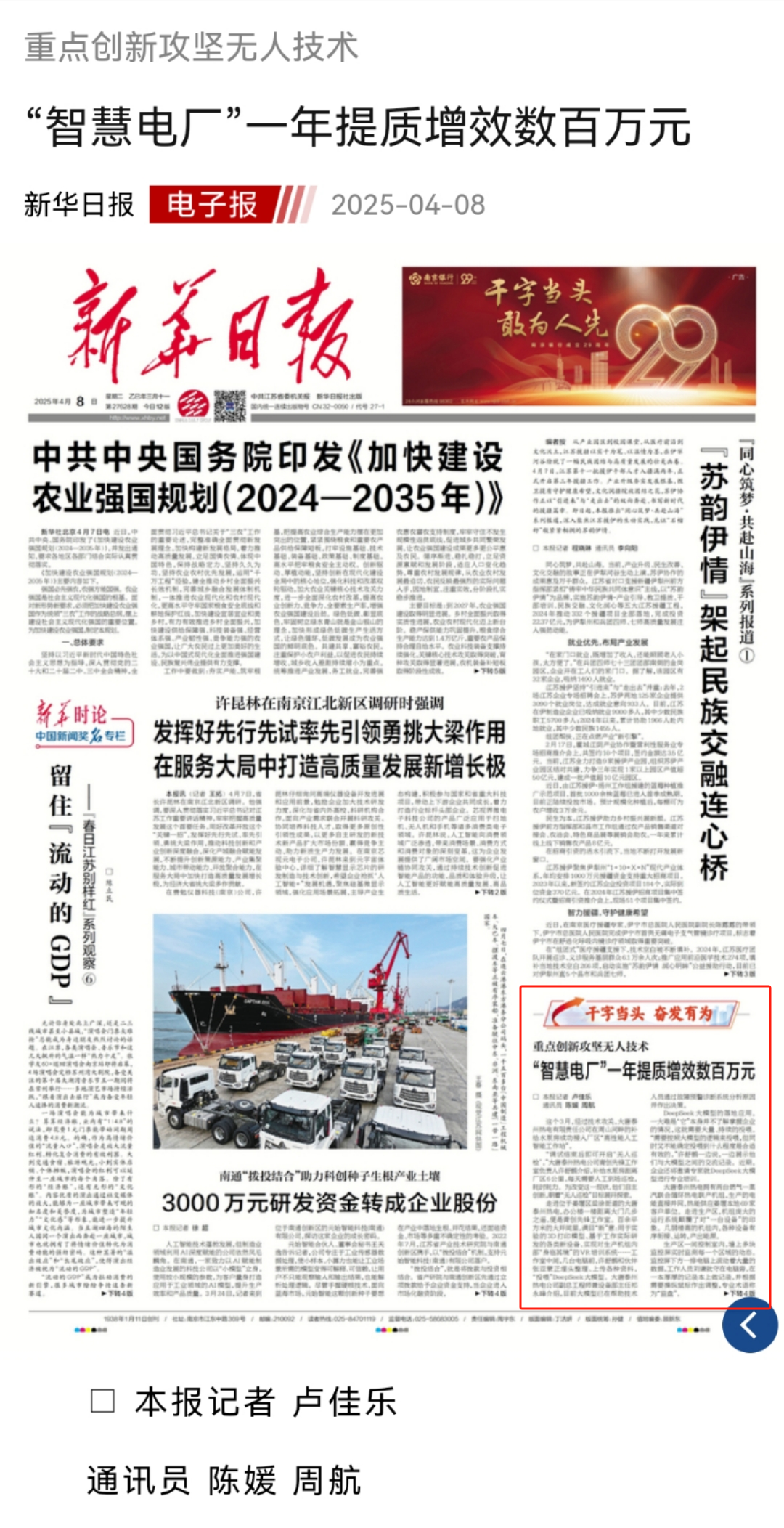 [新華日報] “智慧電廠”一年提質(zhì)增效數(shù)百萬元