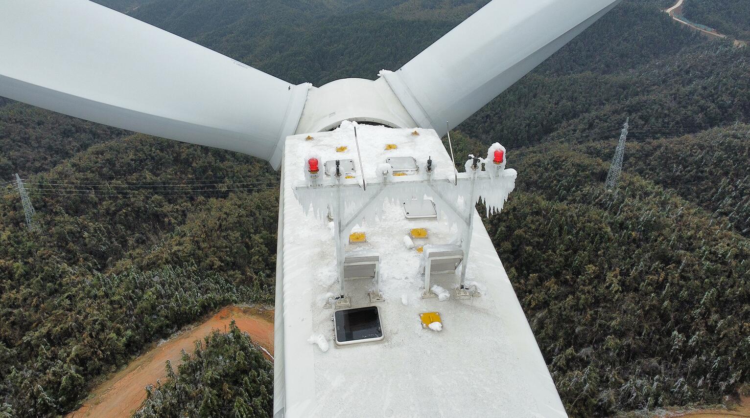 在此次覆冰前后的過程中,江西新能源公司運(yùn)維人員緊盯設(shè)備情況,覆冰時(shí)及時(shí)手動(dòng)停機(jī),對(duì)解除覆冰的風(fēng)機(jī)開展現(xiàn)場(chǎng)查看,確認(rèn)后進(jìn)行啟機(jī),13個(gè)場(chǎng)站成功處理并解決7次因冰雪造成的集電線路和外送線路跳閘事件和多臺(tái)箱變外殼被葉片融冰砸損情況。