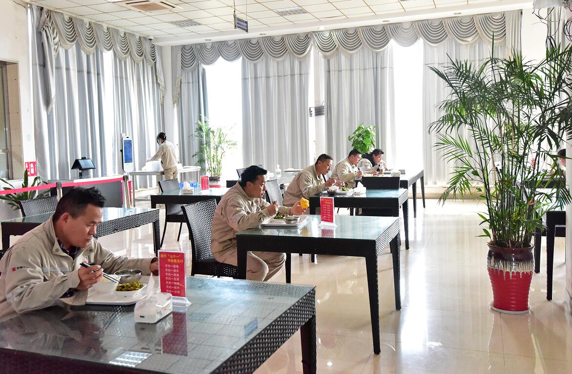 為保證公共場所衛(wèi)生安全,該公司嚴(yán)格落實封閉場所戴口罩、測溫、消毒等措施,職工食堂內(nèi)分批分時就餐、同向就坐等以“獨”攻毒防控措施,已然成為蘇熱人的行動準(zhǔn)則。