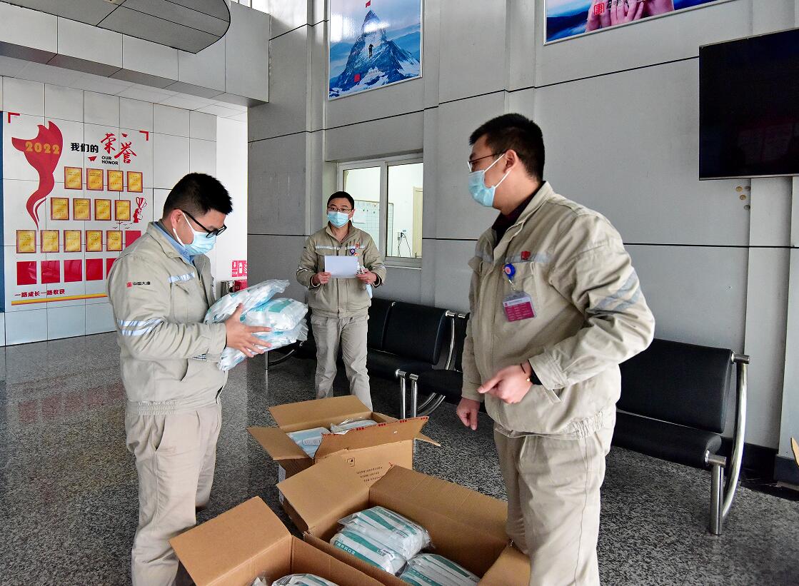 為職工發(fā)放防疫物資