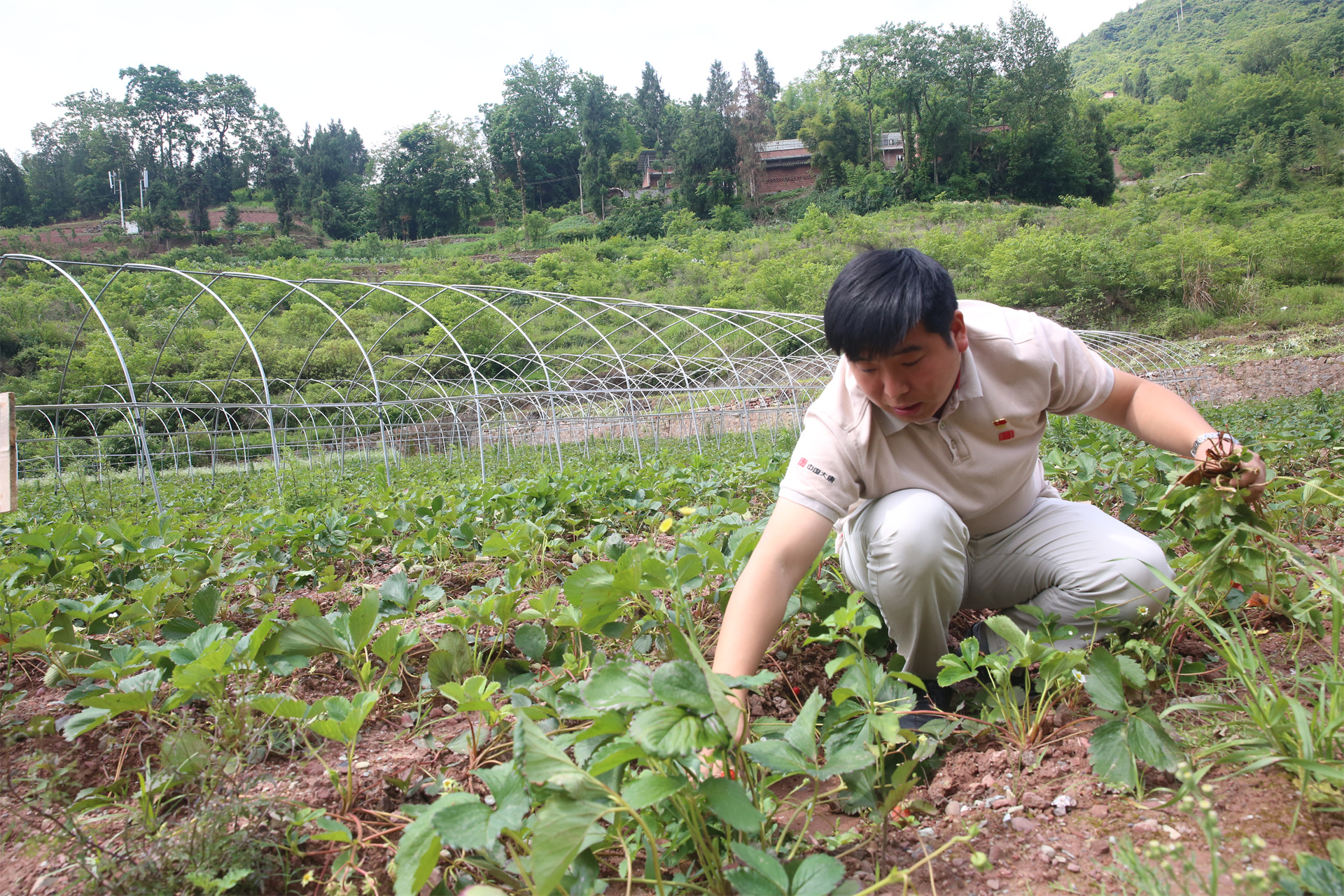 ?精心照管草莓園