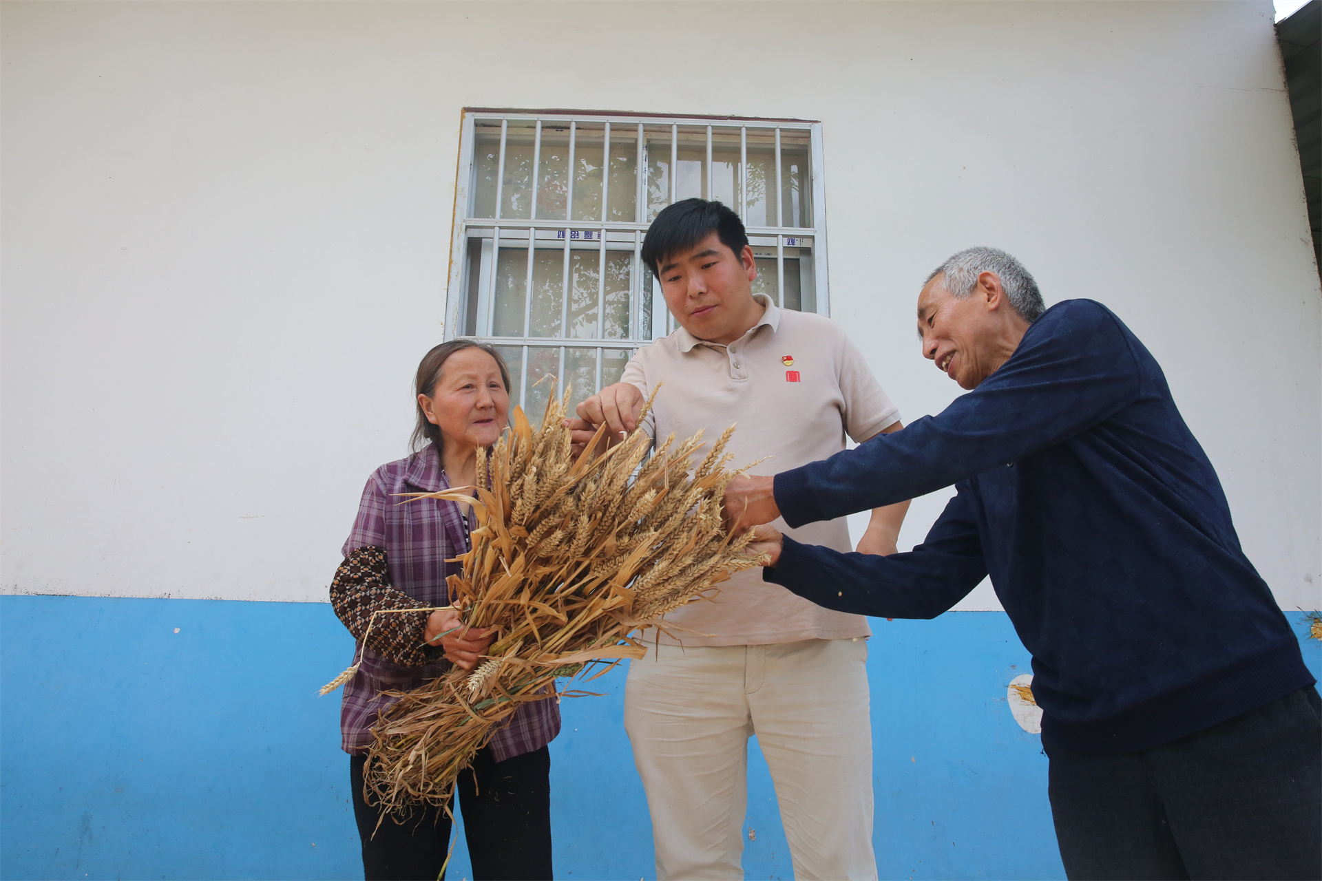 隨后,方名興看到院壩里晾曬的麥子,便拿起一把麥穗仔細(xì)查看,默默計算著小麥產(chǎn)量。